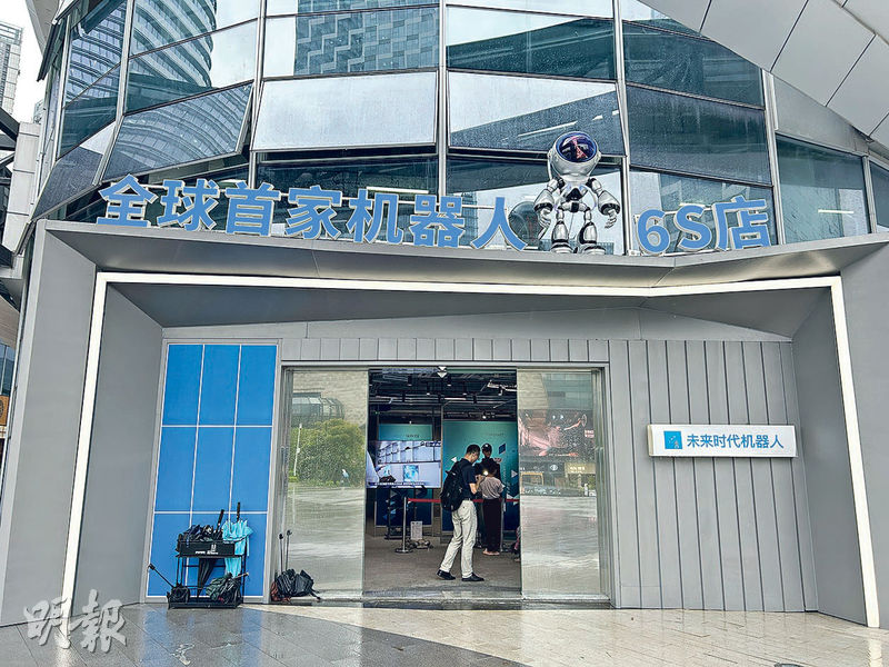 圖為深圳機械人6S店門口。6S店標榜店內機械人可買整機或租機,亦可按自己需求「砌機」。(蔡宛均攝)