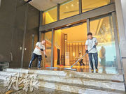 位處低窪臨海地段的富麗敦海洋公園酒店,昨風暴期間大堂多塊玻璃門被海水}至爆裂,海水不斷湧入大堂,網上片段可見,當時身處大堂的人員被突如其來的海水}至失衡跌倒,其間有人大叫「走呀」;另一片段見到當時風勢強勁,捲起的浪與大門高度相若,事後玻璃碎片散落一地,室內盆栽擺設倒地,一片狼藉,室外有牆身物料損疻雱峞C酒店所屬信和集團稱,風暴期間無賓客或員工受傷報告,酒店已加派人手,全力應對風暴帶來的影響。