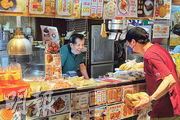 昨早10號颶風信號生效時,粉嶺華明街市有小食檔如常營業,75歲店員楊先生早上5時已回店,他說體諒老闆每月支付8萬元舖租,繼續營業掙錢是「無辦法」,他住鄰近屋h,上班不用5分鐘,且小食店處於室內,故願上班。楊先生也不諱言,至中午也只是「一百幾十」生意,但總比不營業好。
