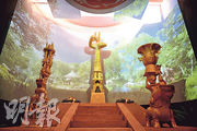 展覽其中一個章節以五面屏幕CAVE全景空間技術,呈現遺址考古現場,畀公眾體驗考古學家鴾u作,例如圖中屏幕右方顯示經清理及修復後麊鱄惆耤C(鍾林枝攝)