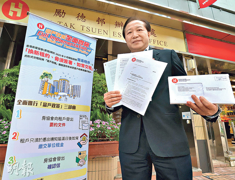 房協富戶主動遷 研保綠表資格4年 下周一起寄新租約規管 2.5萬戶最快2028申報