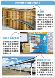【明報專訊】聯合國可持續發展第十一目標為「建設共融、安全、能抵禦災害及可持續的城市和人類居所」。2025年日本大阪世博選址於人工島「夢洲」,意思為「夢想之島」,在世博期間成為日本「社會5.0」可持續發展政策、對未來夢想社會的示範地。