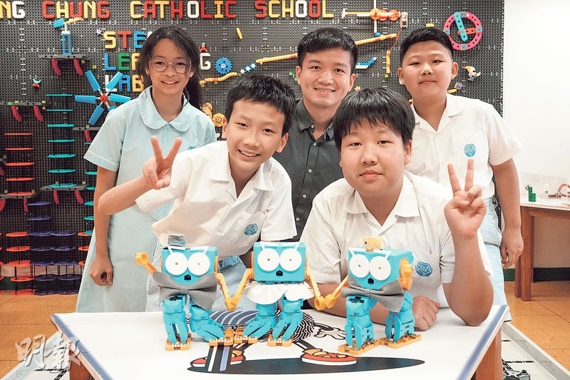 【明報專訊】「Marty's Got Talent!」是第二屆全球機械人挑戰賽(Global Marty Challenge)主題,全球總冠軍東涌天主教學校(小學部)4名六年級學生(受訪時)為「Marty」機械人拍攝才藝表演短片參賽,同學認為致勝關鍵包括簡化編程指令、運用多種編程以外的技巧,例如魚眼鏡頭、定格畫面等,並且善用Marty機身的各種功能,包括靈活運用關節。