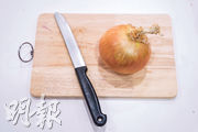(2)把洋b切開一半,然後拿起洋b嗅一嗅,測試一下會否刺鼻,甚至流淚。(馮凱鍵攝)