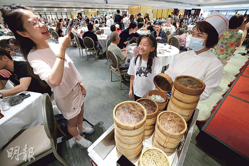 【明報專訊】自1990年在金鐘統一中心開業的老牌酒家「名都酒樓」,多年來吸引不少立法會議員、政商界光顧和設宴,昨日迎來最後一天營業。點心飄香35年,名都酒樓承載本港街坊乃至移民記憶,昨不乏外籍人士到場緬懷,觥籌交錯間可聽到粵英日法多種語言。曾定居香港的法國移民也來捧場,她形容酒樓儼然是其「家族史」的一頁,見證自己定居、誕下女兒又移民,慨嘆本港傳統美食漸減。有曾在統一中心工作的本地熟客三代同堂,憶述三十載光顧感受,卻未曾想到第一次帶孫女品嘗美食,已再沒有下次。