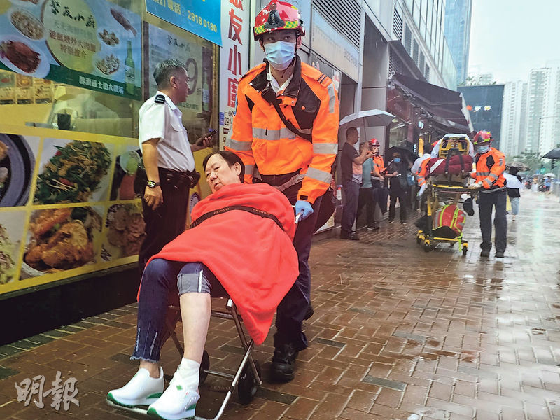 【明報專訊】沙田昨日發生扶手電梯跌倒意外。多名參加齋宴的長者昨午於商場乘下行扶手梯離開時,有長者疑體力不足往後跌倒,令隨後長者相繼絆倒受傷,一度「人疊人」。事件共釀10名長者受傷,由救護車送院治理。
