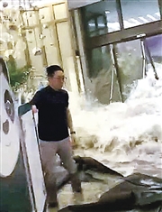 位處低窪臨海地段的富麗敦海洋公園酒店,昨風暴期間大堂多塊玻璃門被海水}至爆裂,海水不斷湧入大堂,網上片段可見,當時身處大堂的人員被突如其來的海水}至失衡跌倒,其間有人大叫「走呀」;另一片段見到當時風勢強勁,捲起的浪與大門高度相若,事後玻璃碎片散落一地,室內盆栽擺設倒地,一片狼藉,室外有牆身物料損疻雱峞C酒店所屬信和集團稱,風暴期間無賓客或員工受傷報告,酒店已加派人手,全力應對風暴帶來的影響。