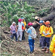 另外,打風期間本港錄得逾千宗塌樹報告,中國建築社區應急義工隊接獲沙田民政處求助,昨早往沙田火炭黃竹洋村徑清理塌樹。中國建築表示,該路段是黃竹洋村對外唯一通道,全村逾120名居民中近半為長者,義工隊昨召集近30名義工及調派4架吊機車、攜帶油鋸等到場清理,最後為兩名急需就醫的長者及4名學童開路。村長表示感謝義工隊解居民燃眉之急。