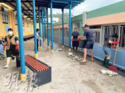 風後狼藉 長洲小學教職員合力清理
