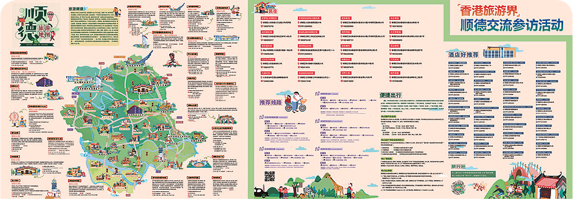【明報專訊】順德與香港關係密切,旅遊及美食廣為人知,早前順德區僑界青年聯合會、香港外遊旅行團代理商協會邀請香港旅遊業界百多名代表赴當地交流,順德區文化廣電旅遊體育局亦特製順德旅遊及美食地圖,詳盡介紹當地特色美食、馳名食肆、景點、酒店民宿及旅遊路線,地圖現可於僑界青年聯合會微信公眾號索取下載,讓大家一圖玩盡順德。