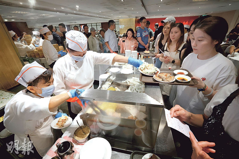 【明報專訊】自1990年在金鐘統一中心開業的老牌酒家「名都酒樓」,多年來吸引不少立法會議員、政商界光顧和設宴,昨日迎來最後一天營業。點心飄香35年,名都酒樓承載本港街坊乃至移民記憶,昨不乏外籍人士到場緬懷,觥籌交錯間可聽到粵英日法多種語言。曾定居香港的法國移民也來捧場,她形容酒樓儼然是其「家族史」的一頁,見證自己定居、誕下女兒又移民,慨嘆本港傳統美食漸減。有曾在統一中心工作的本地熟客三代同堂,憶述三十載光顧感受,卻未曾想到第一次帶孫女品嘗美食,已再沒有下次。