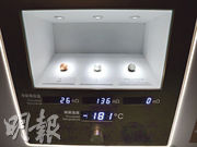 未來科學大獎展覽設有互動展品展示多項科研成果,包括圖中展示-181℃模擬溫度下,銅、鐵及超導體(即釔鋇銅氧化物)儮q阻值。(李紹昌攝)