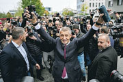 捷克國會大選結束,有「捷克特朗普」稱號的右翼前總理巴比斯(中)有望執政。(路透社)
