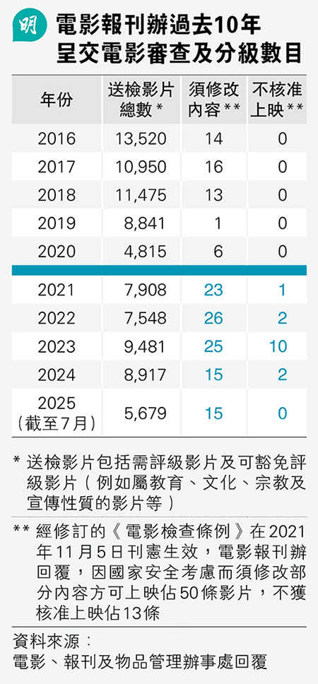 ¡i©ú³ø±M°T¡j2021¦~×qªº¡m¹q¼vÀˬd±ø¨Ò¡nn¨DÀˬdû¼f¬d¤Î¤À¯Å¼v¤ù®É¶·¦Ò¼{¤W¬M¡u¬O§_·|¤£§Q©ó°ê®a¦w¥þ¡v¡C¹q¼v³ø¥Z¿ì¦^ÂСA¡u¦]°ê®a¦w¥þ¦Ò¼{¡v¡A±ø¨Ò¥Í®Ä¦Ü¤µ50ÄÕ¼v¤ù¶·×§ï¤º®e¡A13ÄÕ¤£®Öã¤W¬M¡C2021¦~¦Ü¤µ°e¼f¼v¤ù¹O3.9¸UÄÕ¡A·í§½¥¼¦³´£¨Ñ¤£Àòã©ñ¬M¹q¼v¦W³æ(¨£¥t½Z)¡C±ø¨Ò¥Í®Ä«e5¦~¥¼¦³¹q¼v¤£®Öã¤W¬M±¡úG¡C