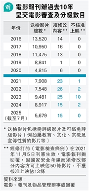 ªñ¦~¦³¹q¼v¦]¤£¦Pì¦]µLªk³q¹L¹qÀ˦ӺM¬M¡C¹q¼v¡B³ø¥Z¤Îª««~ºÞ²z¿ì¨Æ³B¦V¥»³ø´£¨Ñªñ10¦~¹q¼vµû¯Å²Îp(¨£ªí)¡CY¥H2021¦~°_p¦Ü¤µ¦~7¤ë¡A¦³104ÄÕ¶·×§ï¤º®e«á¼½©ñ¡A¥t¦³15ÄÕ¤£§åã¤W¬M¡F·í¤¤¦]¡u°ê®a¦w¥þ¦Ò¼{¡v¶·×§ï³¡¤À¤º®e¤è¥i¤W¬Mªº¦û50ÄÕ¡A¤£Àò®Öã¤W¬M¦³13ÄÕ¡C¦P´Á³B²z°e¼f¼v¤ù¹O3.9¸UÄÕ¡A§Y¦]°ê¦w²z¥Ñn×§ï©Î¤£¯à¤W¬M¦û¦P¦~°e¼f¼v¤ù0.16%¡C¦b2021¦~·s¨Ò¥Í®Ä«e5¦~¡A¥¼¦³¤£ã¤W¬MӮסA¶·×§ï¤º®e¼v¤ù«h¦³50ÄÕ¡C¸Ó¿ìªí¥Ü¡A¨C³¡¼v¤ùªº©Ê½è¡BÃD§÷¡B¤º®e¡Bªí¹F¤âªk¡B¼ç¦bÆ[²³¡B¤W¬M±¡úG¤Î³õ©Òµ¥§¡¦³¤£¦P¡A¤£¯à¤@·§¦Ó½×¡C