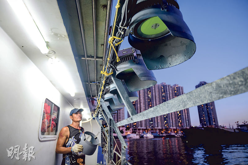 使用燈光圍網捕魚的鄭先生稱,若燈光一定要垂直射向水面,則「變鷛茞謢茪ㄛO照魚」,捕魚效率大減,另一方法則是在船上安裝延伸船外兩側的支架,再安裝燈光垂直向下射,但重心便會落在吊滿燈光的支架,小船易失平衡翻倒。