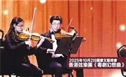 李靖甫(右)近年加入亞洲青年弦樂團,今年國慶文藝晚會更踏上紅館,與香港弦樂團同台演奏《粵劇幻想曲》。(李家超fb影片截圖)