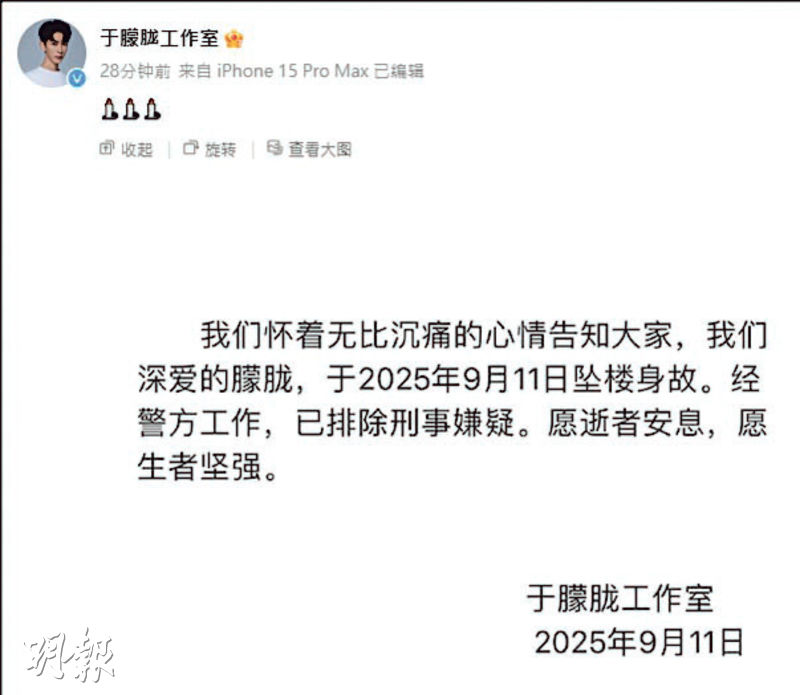 ª½¦Ü³Ä±ß6®É³\¡A¤_ÂaÄg¤u§@«Ç¦b·L³ÕÃÒ¹ê¥Lªº¦º°T¡G¡u§ÚÌÃhþÓµL¤ñ¨Iµhªº¤ß±¡§iª¾¤j®a¡A§Ú̲`·RªºÂaÄg¡A©ó2025¦~9¤ë11¤é¼Z¼Ó¨¬G¡C¸gĵ¤è¤u§@¡A¤w±Æ°£¦D¨Æ¶ûºÃ¡Cº@³uªÌ¦w®§¡Aº@¥ÍªÌ°í±j¡C¡v¤_ÂaÄgªº¯»µ·¯É¯É¯d¨¥¡A¤ßµh«s±¥¡C