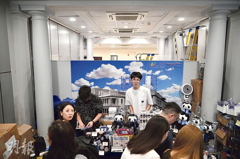 昨日舊油麻地警署內人頭湧湧,不少遊客選購心儀紀念品,包括穿上制服的熊貓公仔。文體旅局長羅淑佩昨稱,她與團隊曾就「九大旅遊熱點」之一的舊油麻地警署召開數次會議,審視相關設計構思,「去到幾細緻鵀a方」,已進入裝修及籌建階段。(鍾林枝攝)