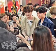 洪卓立(中)早前到彌敦道宣傳新歌《重返彌敦道》,被粉絲包圍。(資料圖片)