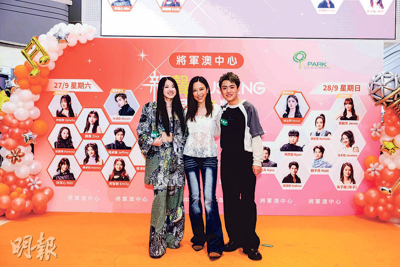 【明報專訊】無那q唱比賽節目《聲秀》16名學員前日及昨日分別出席在將軍澳舉行的《新聲Busking》馬拉松活動,昨日甄敏芳(Jenny)、胡子貝(Matt)、馮熙燮(Ryan)、布子殷(布子)、胡港豐(Andrew)、蕭凱恩(Michelle)、冼奕瑜(Jasmine)和司徒泆(Haru)演繹多首歌曲,獲不少粉絲到場打氣,還有《聲夢傳奇》師姐林沚羿獻唱;導師鍾舒漫現身支持學員。林沚羿表示演出令她想起《聲夢》學員第一次商場演出情景,非常感觸。她將與冼靖峰在廣州開音樂會,要閉關準備,由於接茯偎q競比賽轉播任主持,未能留在廣州玩。
