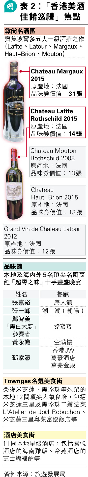 ¡u´L©|¦W°s°Ï¡v¤Î¡u«~¨ýÀ]¡v¬°¬Ì«á­º¦¸­«²{(ªí2)¡C³X«È¦p«DÁʶR¡u´L©|«~°sÃÒ¡v¡A¶·¥tÁʤJ³õ¨é¶i¤J´L©|¦W°s°Ï¡A¸Ó°Ïºôù¦U°ê³»¯Å¦WÆC¡A¥]¬A¥Ñ°ê»ÚÅv«Â°sµû®aJames Suckling¬D¿ïªº¸²µå°s¡A¥H¤Îªiº¸¦h¤­¤j¤@¯Å°s²øLafite¡BLatour¡BMargaux¡BHaut-Brion¤ÎMoutonªº¨ÎÆC¡A»««È¥i¥Î12¦Ü31±i¤£µ¥ªº«~¨ý¨é«~¹Á¤­¤j¦WÆC¡C«~¨ýÀ]«hÁܽХ»¦a¤Î®ü¤º¥~¦@5¦W¼p¡A¬¶»s¡u¶W¸f¤§¨ý¡v¤Q¤â±ß®b¡C
