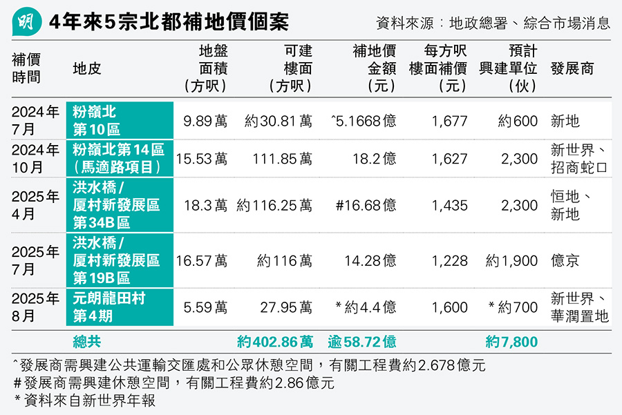 北都4年5宗換地 伙數若半個嘉湖 共補地價逾58億 業界料新項目續至