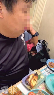 火鍋店職員向一對男女表示透過閉路電視發現他們將食物放入環保袋,要求他們交還,幾經勸喻,男子(圖)從袋中徒手抓起肥牛。(網片截圖)