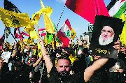 黎巴嫩真主黨支持者上周六在貝魯特以南集會。(法新社)