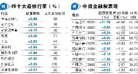 ¬Q¤Ñ¬ì§ÞªÑÄò¬°¤É¥«ªº±À¤â¡Cªü¨½¤Ú¤Ú(9988)¡BÄ˰T(0700)¡B¤¤ªä(0981)»P¬ü¹Î(3690)¤É2%¦Ü5%¡A¦Xp¬°ùÚ«ü°^Äm¶W¹L200ÂI¤É´T¡Cùڥͬì§Þ«ü¼Æ¥çº¦¹O2%¡C¤£¹L¡A»s³y·~¬ÛÃöªºªí²{§ó·mÃè¡A¼Æ¾Ú®w°lÂܪº¦æ·~¤¤¡Aª÷ÄݤÎÄq¥Û¤Éªñ4%¡F·s¯à·½²£·~¤W¤É3.7%¡A¤u·~ªÑº¦¬ù2.9%¡Aì§÷®Æ¤É2.8%¡C