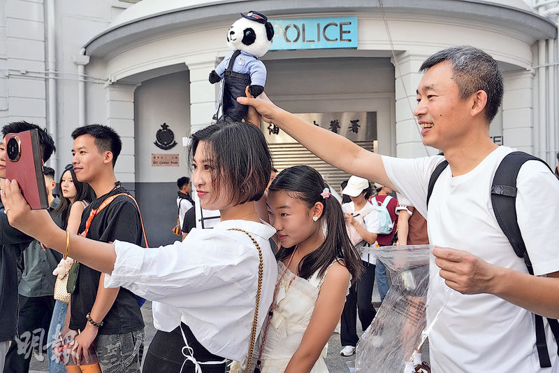 本報記者昨午到油尖旺觀察,大批旅客聚集舊油w地警署「打卡」;尖沙嘴海港城亦絡繹不絕,名店外現人龍。而中環嘉咸街同樣受內地旅客歡迎,路牌、鐵閘、牆身壁畫,都成為打卡目標;傳統景點中環纜車站大排長龍,警方在入口架起鐵馬,劃出排隊區維持秩序;其他熱門景點如中環碼頭、中環摩天輪及堅尼地城海旁同樣人頭湧湧。