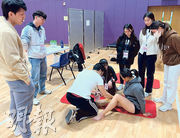 理大康復治療科學系師生去年5月為全運會體操港隊彈網代表李冠緯(白衫)提供運動物理治療支援。(理大提供)