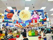 位於士刁路夾華登路地區的一家華人超市,店內掛滿中國傳統的燈籠,入口處懸掛的一幅寫有「中秋快樂」和嫦娥、月餅、玉兔圖案的巨幅廣告非常顯眼,有消費者駐足拍照。