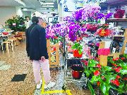 萬錦世紀廣場的一間花店,商家貼出中秋鮮花的廣告。一名店員說:「這兩天銷售比平時好些,許多顧客都是因為過中秋節買花。其中蘭花賣得比較好,如果你為自己買,這款小盆的蘭花只有13元,花期1個月,如果你送人,這個大盆的蘭花適合,花期有3個月。」
