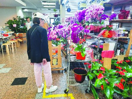 一名正在選購的女士說:「中秋節我要去朋友家,除了送一盒月餅外,想再買一盆花增添節日氣氛。疫情前中秋節我們一家人會外出吃團圓飯,因為疫情,這個習慣中斷了,當然也有經濟上考量,現在物價太高了。」