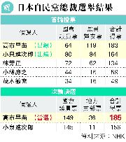 在首輪投票中,高市早苗在黨員/黨友票遙遙領前,即使議員票排第三,仍以首名出線,跟小泉進次郎對決。在次輪投票中,高市續在黨員/黨友票轉化的都道府縣黨支部票領放,並在議員票意外反超,最終以29票優勢當選。