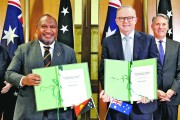 澳洲與巴布亞新幾內亞總理周一(6日)在澳洲首都堪培拉簽署簡稱「普克普克」(Pukpuk)的聯防條約,是兩國70多年來首次簽訂此類協議,也是巴新歷來首度簽署的國防協議。澳洲被指希望藉此阻止中國在太平洋地區擴大影響力,但巴新強調並非基於地緣政治,而且會維持現有對華關係。