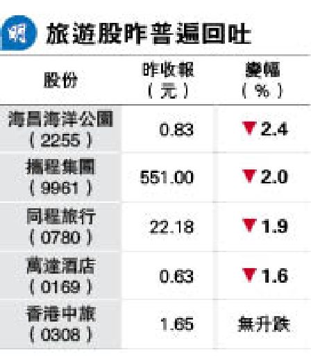 科網內房顯著回吐 旅遊股臨黃金周尾聲「散水」