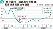 8月零售額增3.8% 升幅20月高 金價升帶動珠寶首飾增16.4% 業界黃金周「信心不錯」