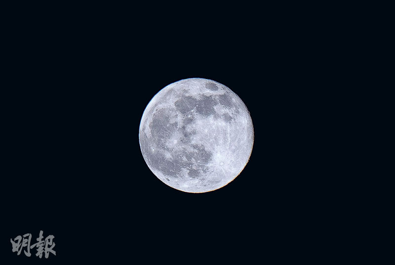 今年第三個「超級月亮」鬗互謍e後登場,直徑較平常大14%,亮度提升30%,同時出現「十五月亮十六圓」現象,即係追月夜鴾諞G(圖3)比中秋正日更圓。根據天文台賞月錦囊,噚日早上11時48分係滿月,但當時月亮位於香港地平線以下,市民睇唔到;到鰴覺6時06分,月亮從地平線升起,到今日零時34分月上中天,係最佳賞月時間。