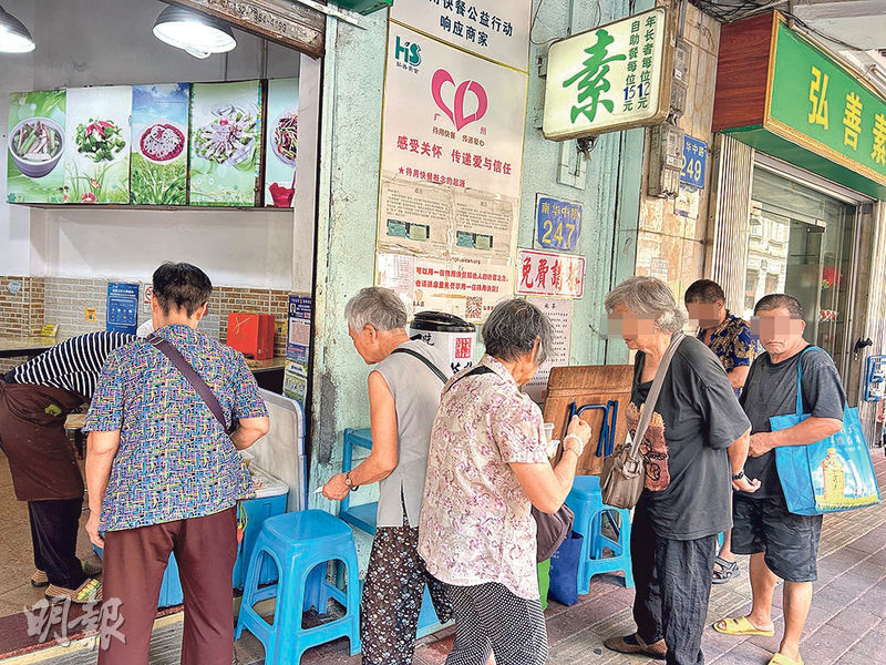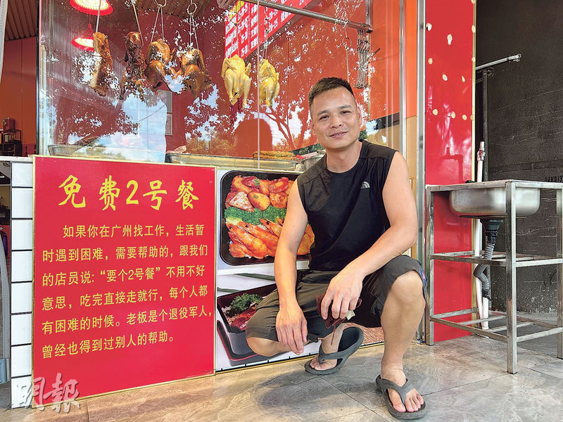 與弘善素食的系統管理不同,廣州番禺區的添記隆江豬腳飯雖同樣有愛心餐,但不對派發對象設門檻,只要進店說一聲「2號餐」便可。派了近10年飯,本身是退役軍人的添記老闆黃展護解釋:「不設限制是不想讓他們為了一頓飯去證明自己的困難,以保護他們的尊嚴和隱私。」這份無條件信任雖偶有被濫用,卻也成為許多身陷困境者的依靠,即便早前走紅網絡帶來爭議與壓力,他仍守住這份無條件信任守護求助者的初心。