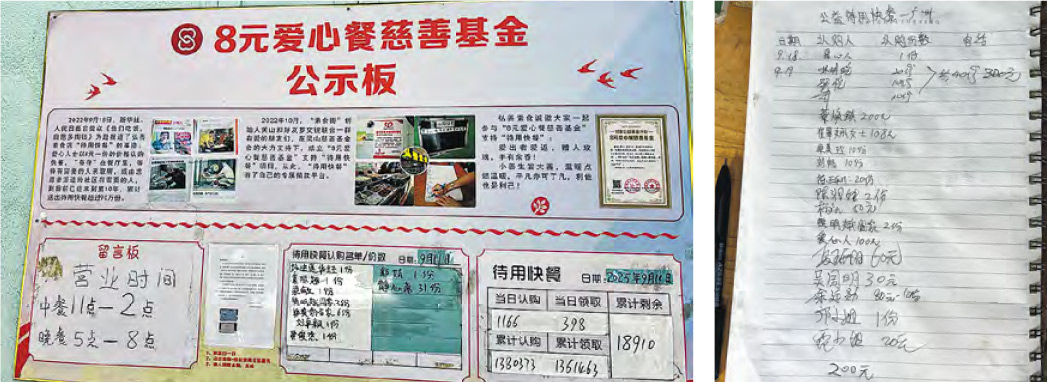 於是弘善逐步將派飯走向制度,愛心餐不再單憑一句「我需要」就能領取,而是要出示低保(內地對低收入群體的最低生活保障)、失業證、殘疾證等相關證明,登記領取專用卡後才能一天按時獲派兩餐;同時實行「代用快餐」制,即每名就餐的食客可選擇多付一份飯錢給有需要的人。「後來愈來愈多人知道這件事,有很多愛心人士會捐款,但同時也有人質疑款項去處。」所以弘善安排員工每天仔細登記每一筆捐贈、每一份派送,並在微博公示帳目,接受社會監督。