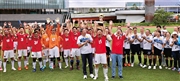 【明報專訊】立法會與政府昨在啟德青年運動場踢足球友誼賽,由特首李家超與立法會主席梁君彥主持開球禮。賽事在3號風球下舉行,李家超形容像行政與立法關係般風雨無阻,為香港未來打拼。梁君彥形容打一場好波與治理香港有許多共通點,領隊要看懂大局,踢波要有隊形,「懂得互相包抄補位」,相信立法會會做好監察和配合政府的工作,「不僅協助『把關』,更樂意『助攻』」。賽事由政府隊以2:1險勝立法會隊,上半場先由土木工程處副處長曹偉雄射入12碼領先,下半場由民建聯陳學鋒的兒子追和,最終財庫局首席助理秘書長王梓傑為政府隊奠定勝局。賽後副律政司長張國鈞(前排中)高舉獎盃,與政務司長陳國基(前排右)等慶祝。
