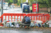 有民?昨在英國曼徹斯特發生恐襲的猶太教堂附近擺放鮮花,哀悼受害者。(路透社)