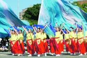 【明報專訊】台灣雙十慶典昨日預演,主持人開場時祈願花蓮災民盡速重建家園,壓軸由空軍雷虎小組「勇鷹」高教機五機編隊噴彩煙飛越台北總統府上方,這是雷虎小組換裝勇鷹高教機後首度在雙十大會預演亮相,現場民眾連聲歡呼。