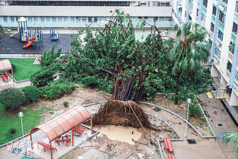 位處低窪臨海地段的富麗敦海洋公園酒店,昨風暴期間大堂多塊玻璃門被海水}至爆裂,海水不斷湧入大堂,網上片段可見,當時身處大堂的人員被突如其來的海水}至失衡跌倒,其間有人大叫「走呀」;另一片段見到當時風勢強勁,捲起的浪與大門高度相若,事後玻璃碎片散落一地,室內盆栽擺設倒地,一片狼藉,室外有牆身物料損疻雱峞C酒店所屬信和集團稱,風暴期間無賓客或員工受傷報告,酒店已加派人手,全力應對風暴帶來的影響。