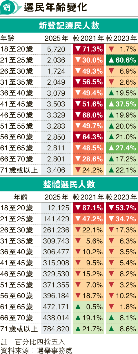 ¡i©ú³ø±M°T¡j¥ßªk·|12¤ë7¤é±NÁ|¦æ´«©¡¿ïÁ|¡C¿ïÁ|¨Æ°È³B¬Q¤½¥¬¥¿¦¡¿ï¥Áµn°O¥U¡A¤µ¦~¦a¤è¿ï°Ï¿ï¥Á¬ù413.8¸U¤H¡A¸û¥h¦~¥¿¦¡¿ï¥Áµn°O¥U¤Ö¬ù7¸U¤H¡A³sÄò²Ä¥|¦~¤U¶^¡A¹ï¤ñ¤W©¡2021¦~¥ßªk·|¿ïÁ|«h´î¤Ö¹O33¸U¤H¡C¬Û¸û2021¦~¥ßªk·|¿ïÁ|¤Î2023¦~°Ïij·|¿ïÁ|¡A¦~»´¿ï¥Á§¡¤j´TµäÁY¡A¨ä¤¤18¦Ü20·³¿ï¥Á¤À§O¤j¶^¬ù87%¤Î54%¡F¦U¦~ÄÖ¼h¥u¦³66¦Ü70·³¤Î71·³©Î¥H¤W¦³¼Wªø¡C¦³ª½¿ïijû»{¬°ÃøÂǦ¹¦ôp¦~©³§ë²¼²v¡C