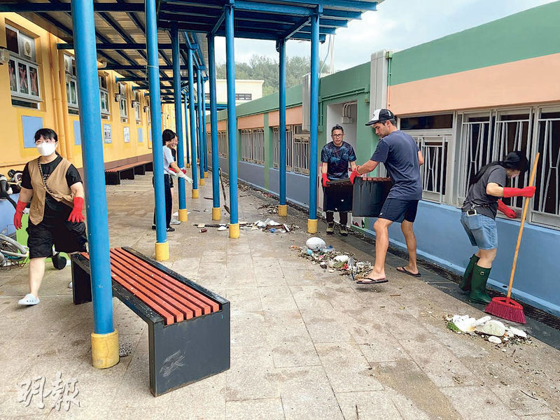 風後狼藉 長洲小學教職員合力清理
