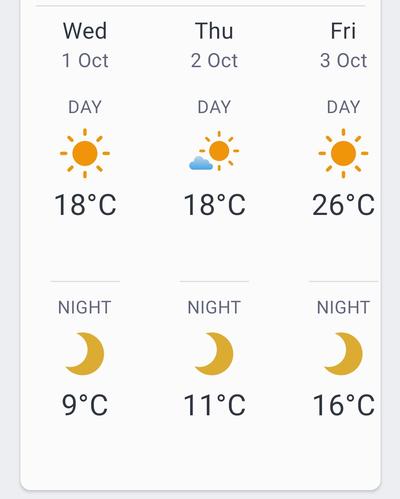 【明報專訊】多倫多今日天晴,氣溫攝氏9度至18度,明日晴間陰,氣温攝氏11度至18度,後日天陰氣溫攝氏16度至26度。