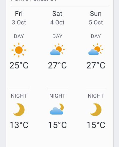 【明報專訊】多倫多今日天晴,氣温攝氏13度至25度,明日晴間陰,氣温攝氏15度至27度,後日晴間陰,氣温攝氏15度至27度。